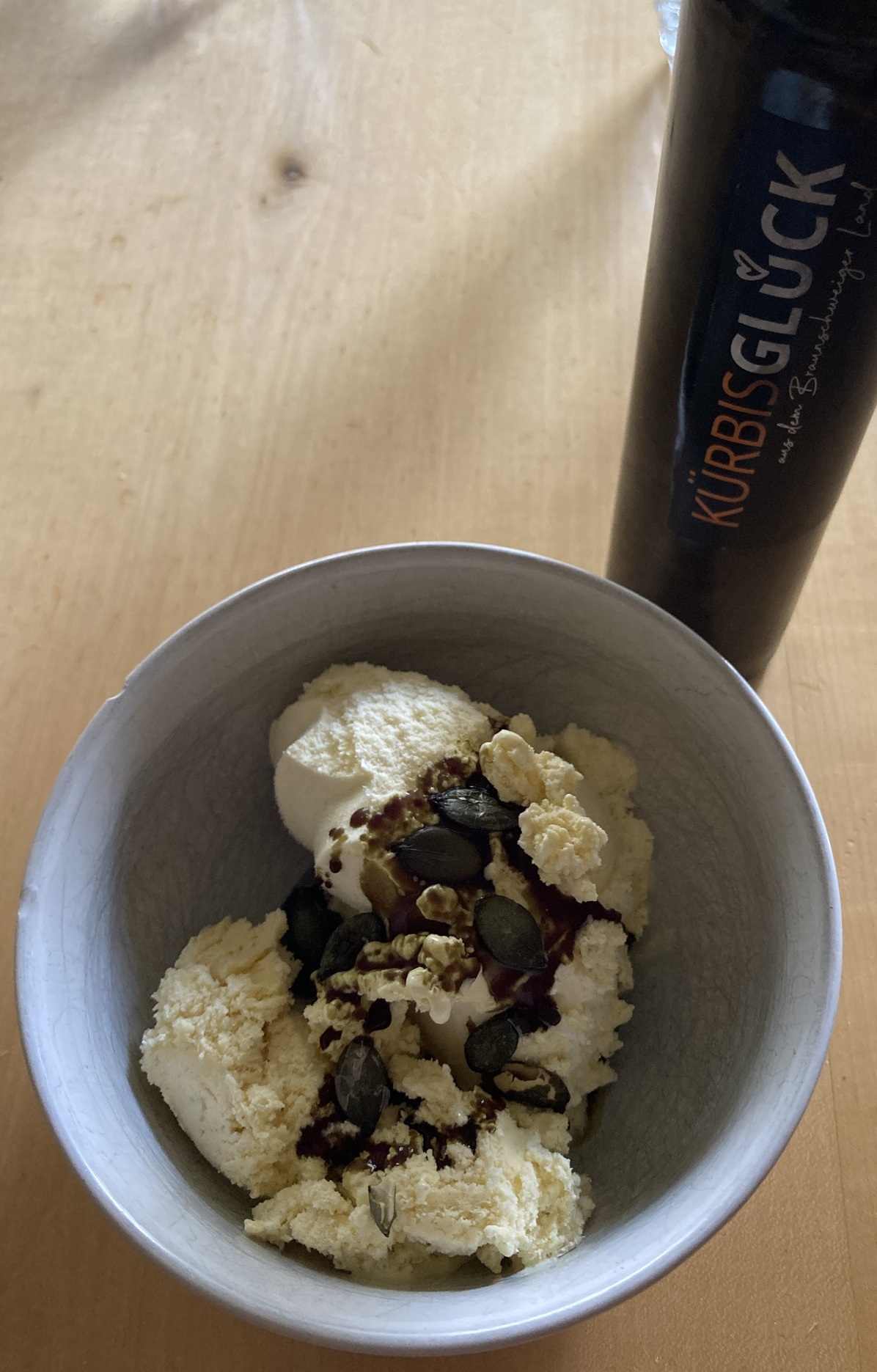 Kümmel abschmecken und den Schmand unterrühren. | |